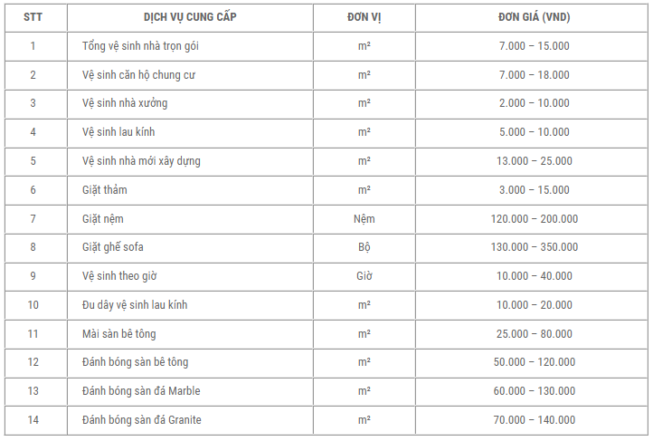 Bảng giá dịch vụ của MediClean minh bạch để khách hàng nắm thông tin
